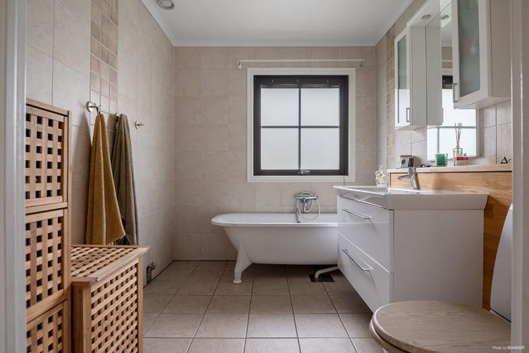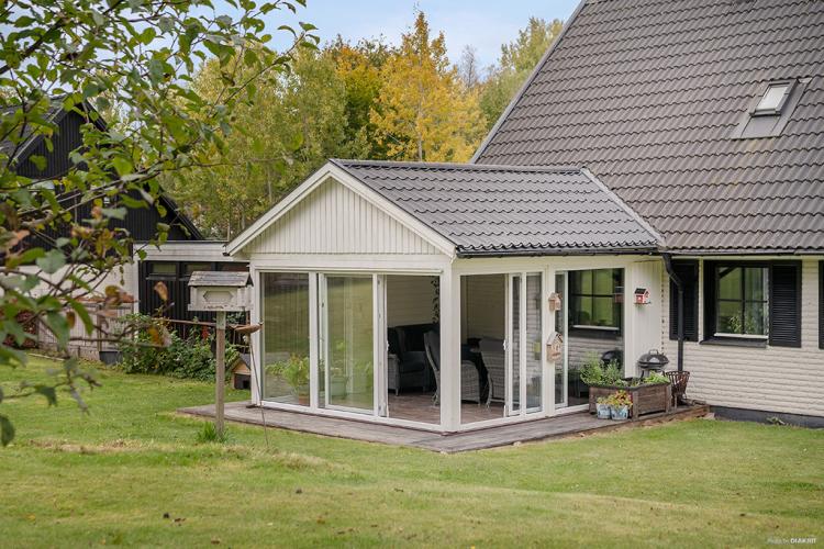 Villa med bra utrymmen, kök med utgång till delvis överbyggt altandäck där man kan njuta av eftermiddagssolen, fyra till fem sovrum, Vardagsru...